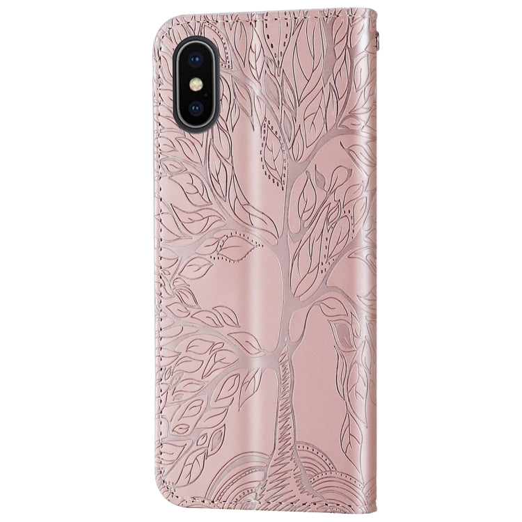 Estuche de Cuero Life Of Tree para iPhone X / Xs con Tapa Horizontal, Soporte, Ranura para Tarjeta, Billetera, Marco y Cordón (Oro Rosa)