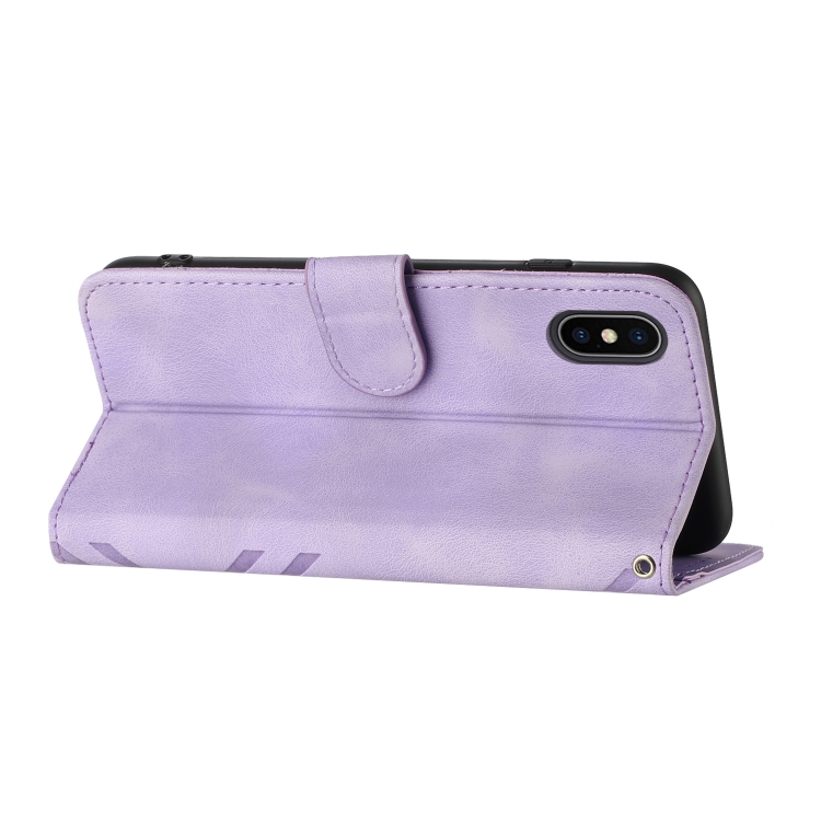 Funda para iPhone X Xs Line Pattern Skin Feel de Cuero para Teléfono (Púrpura Claro)