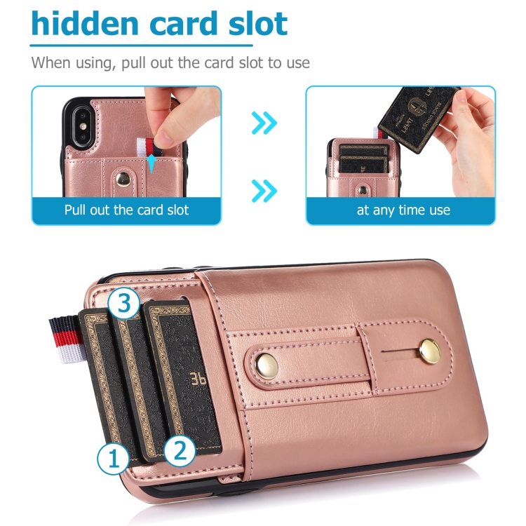 Funda para iPhone X / Xs Muñequera Kickstand Wallet de Cuero (Oro Rosa)