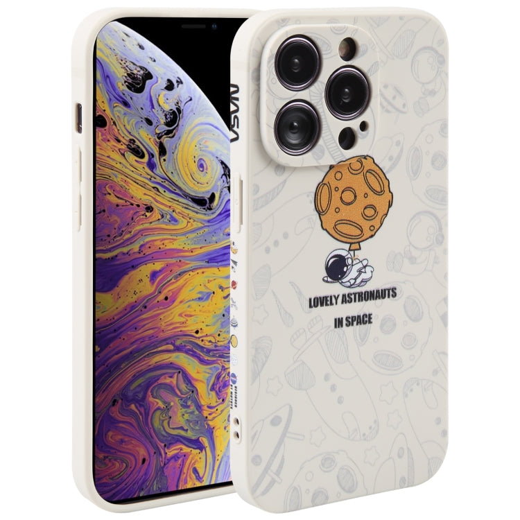 Funda de teléfono iPhone X Xs Silicona borde recto patrón Astronauta (Blanco)