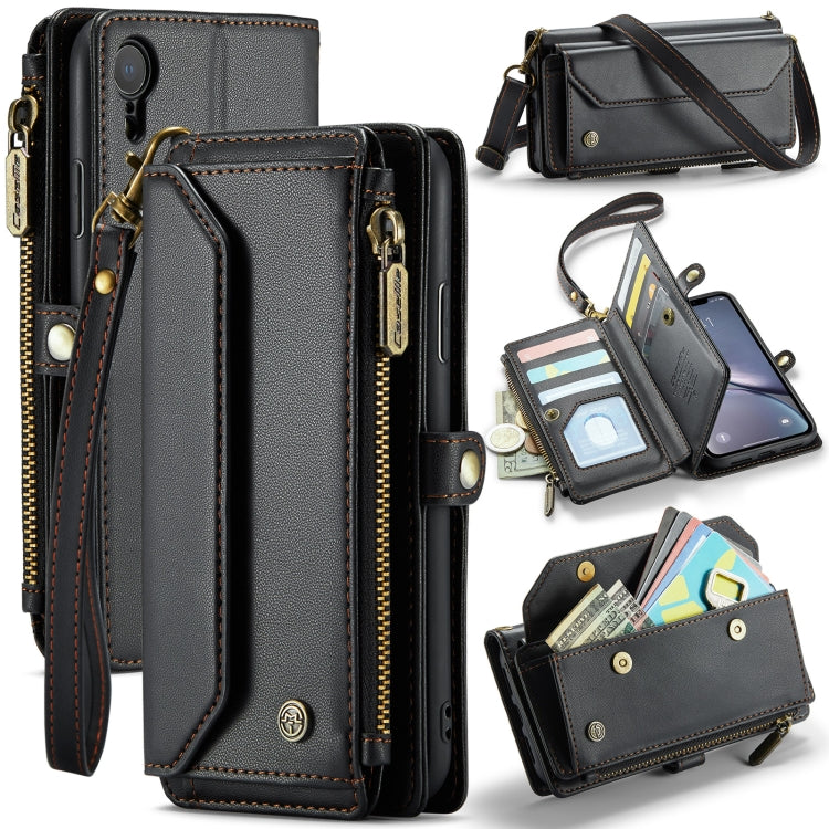 Estuche para teléfono Caseme C36 para iPhone Xr con ranuras para tarjetas y cremallera Cartera de cuero antirrobo Rfid (Negro)