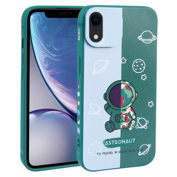 Funda para iPhone Xr TPU Color Contrast Astronaut Pattern (Verde)