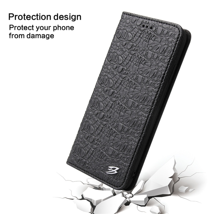 Funda para iPhone Xr Crocodile Texture PC TPU Cuero Tapa Horizontal Soporte Ranuras Tarjetas Billetera (Negro)