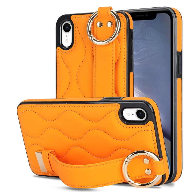 Funda para iPhone Xr Antideslizante de Pu con Anillo y Muñequera (Naranja)