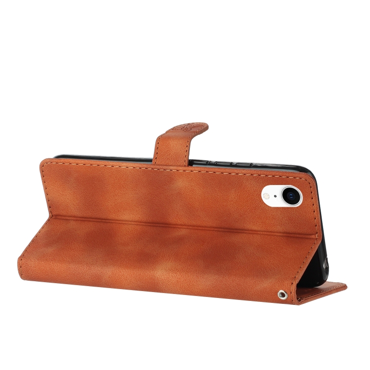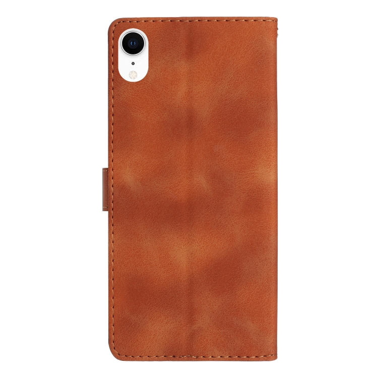 Funda de Teléfono iPhone Xr Cuero Estampado Flores En Relieve (Marrón)