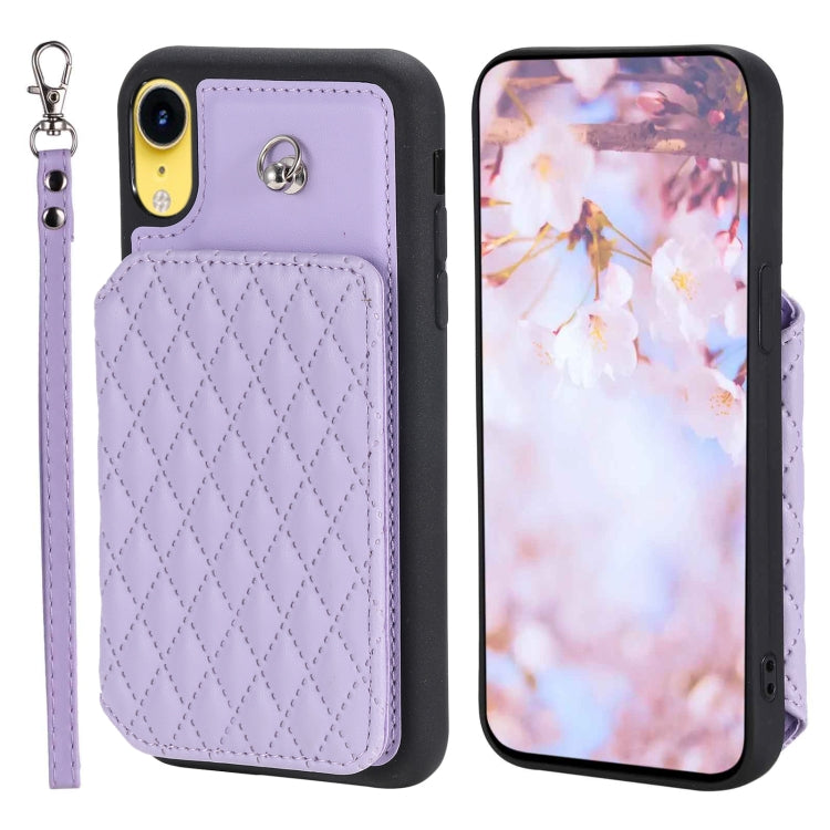 Funda para Teléfono iPhone Xr Bolsa para Tarjetas Textura de Rejilla con Cordón (Púrpura)