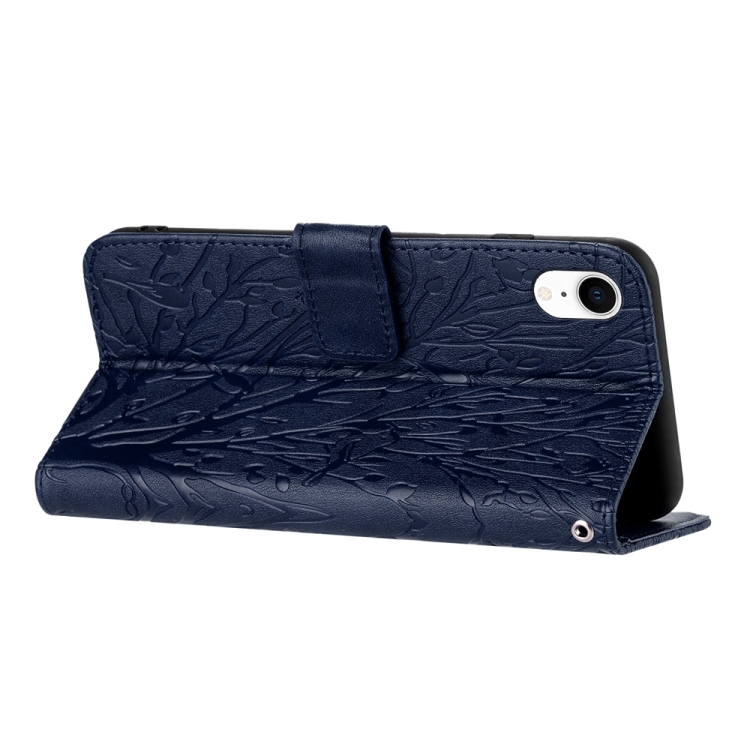 Funda para Teléfono iPhone Xr Cuero Patrón En Relieve Tree Birds (Azul)