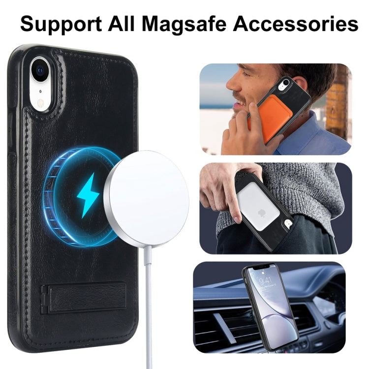 Funda para Teléfono iPhone Xr Magsafe Soporte Invisible Cuero Retro (Negro)