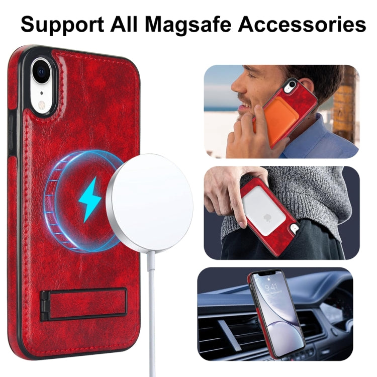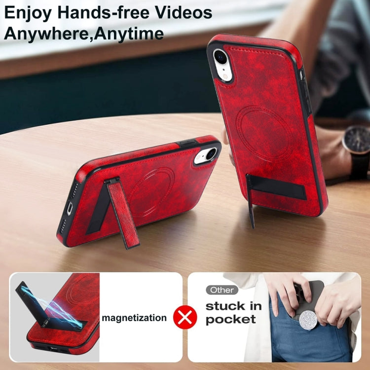 Funda para Teléfono iPhone Xr Magsafe Soporte Invisible Cuero Retro (Rojo)