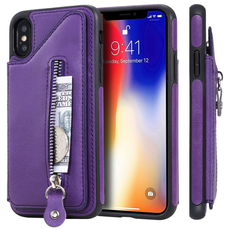 Funda Protectora para iPhone Xs Doble Hebilla Cremallera a Prueba de Golpes (Púrpura)