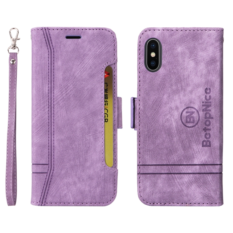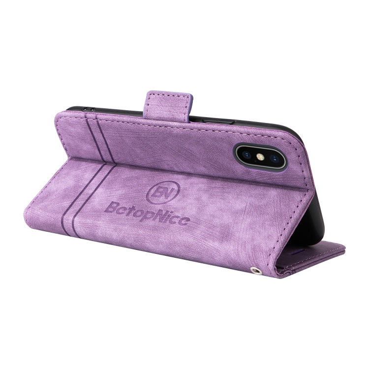 For iPhone XS Max BETOPNICE Double-sided Buckle Leather Case (Purple)