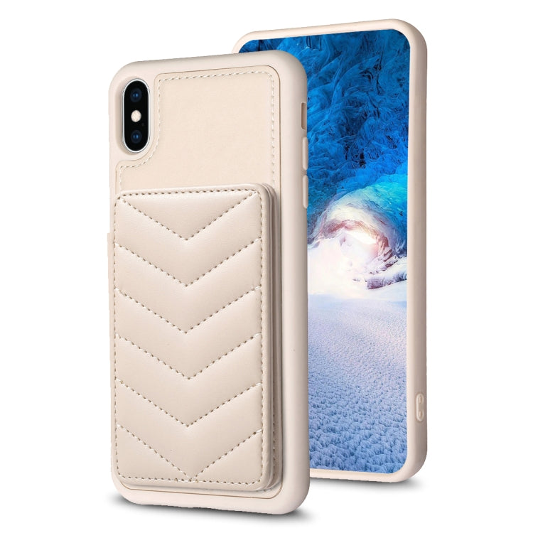 Funda para iPhone Xs Max Bf26 Wave Pattern Card Bag Holder Phone Case (Beige)