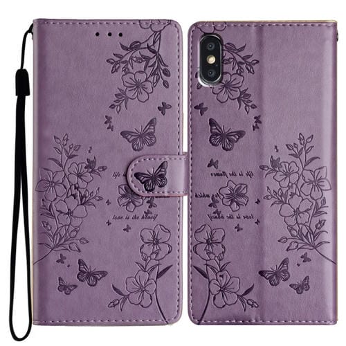 Funda de Cuero para iPhone Xs Max Butterfly Love Flower en Relieve (Púrpura)