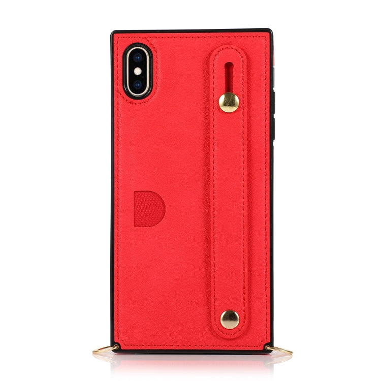 Funda para iPhone Xs Max Correa de Muñeca PU + TPU Estuche Protector a Prueba de Golpes con Cordón Cruzado y Ranura para Tarjeta (Rojo)