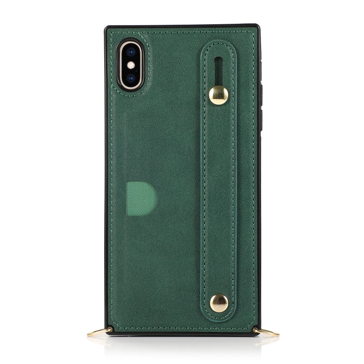 Correa para la Muñeca Pu + TPU Estuche Protector para iPhone Xs Max a Prueba de Golpes con Cordón Cruzado Soporte y Ranura para Tarjeta (Verde)