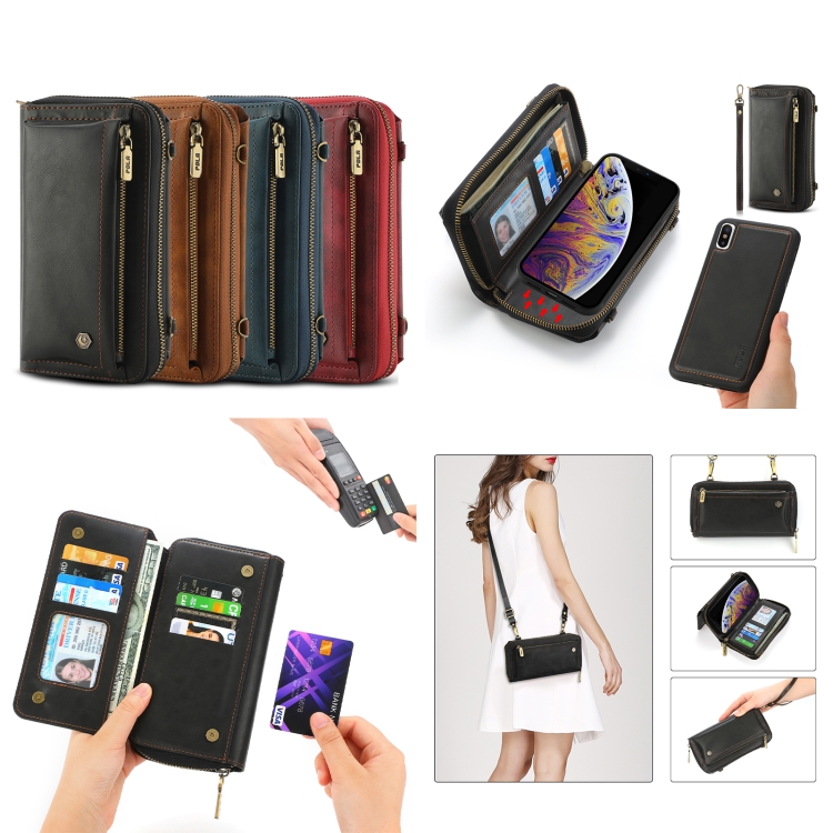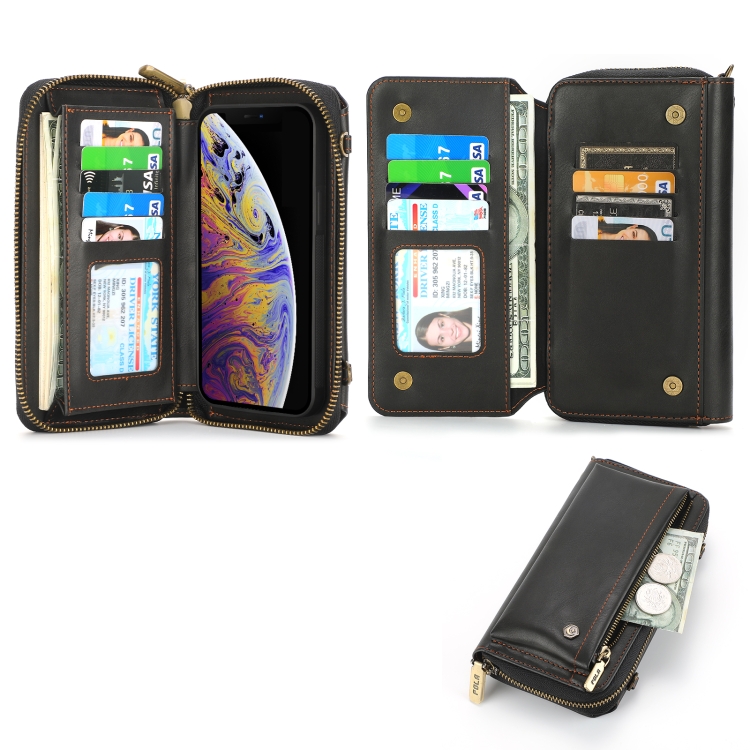 Funda para Teléfono iPhone Xs Max Crossbody Cuero con Billetera y Cremallera (Negro)