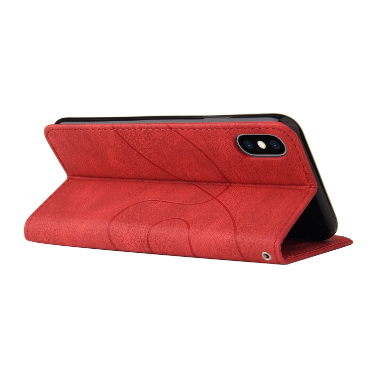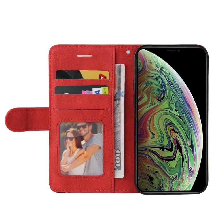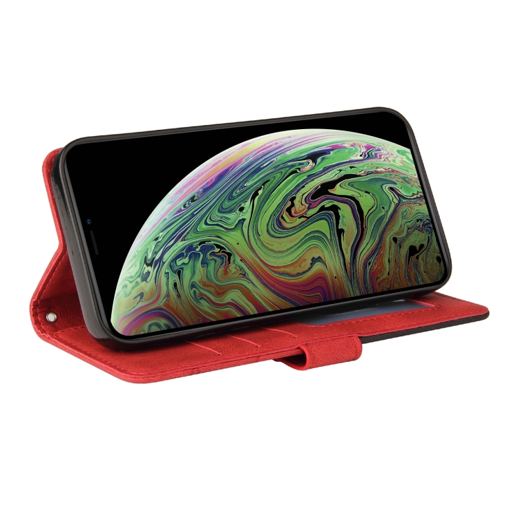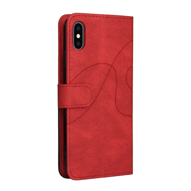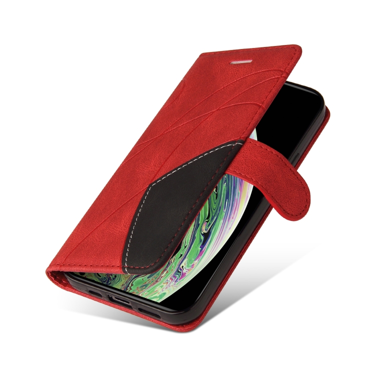 Estuche para iPhone Xs Max Cuero de Pu Tapa Horizontal Empalme Dos Colores Soporte Ranuras Tarjetas Billetera (Rojo)