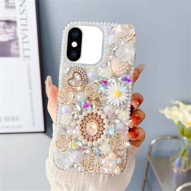 Estuche para Teléfono iPhone Xs Max con Incrustaciones de Diamantes y Rosas para PC (Blanco)