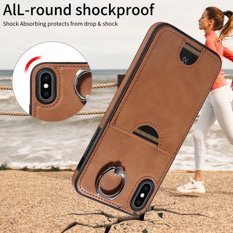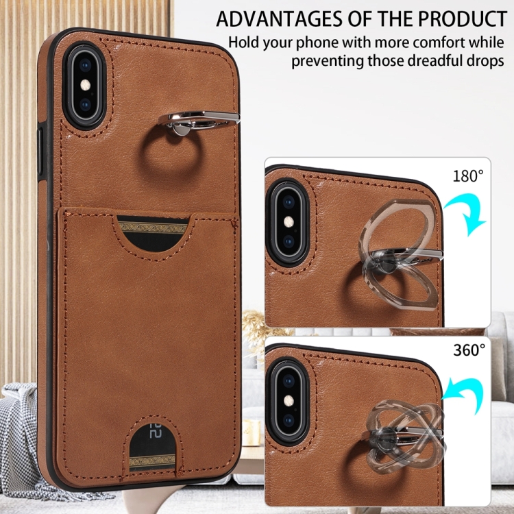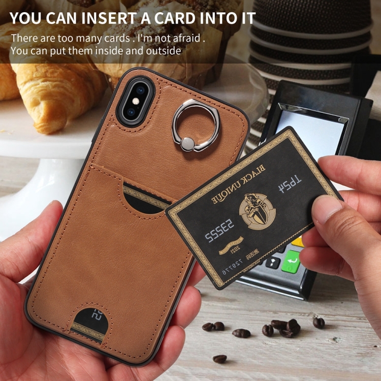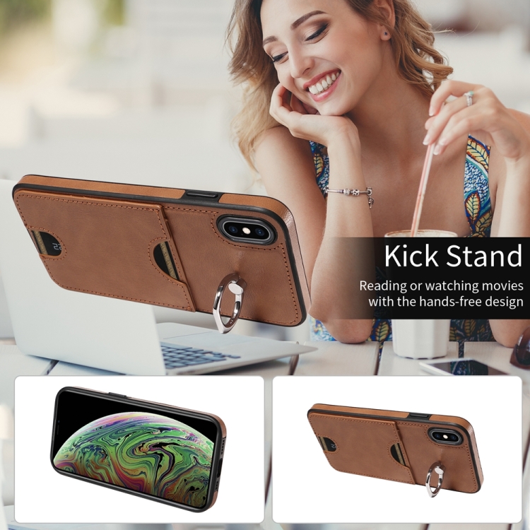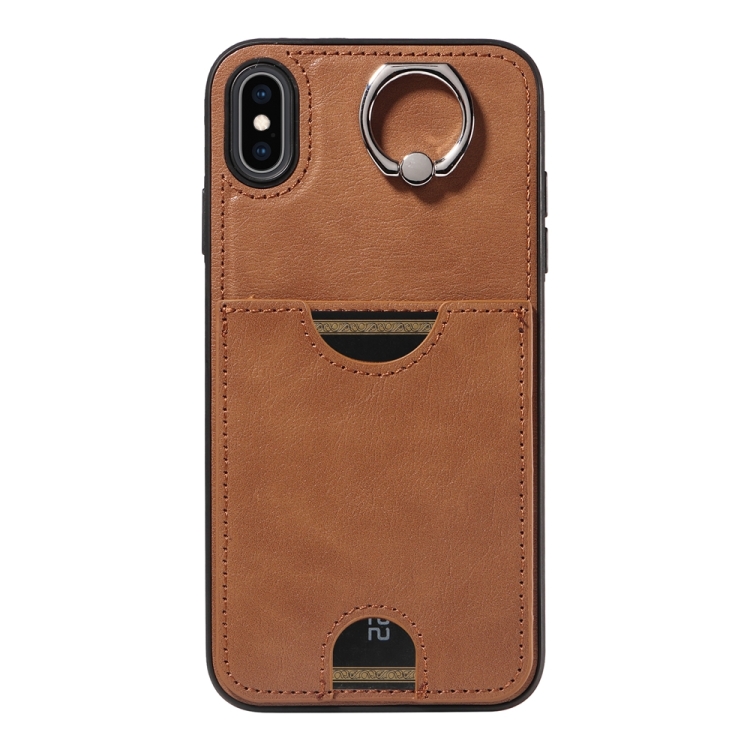 Funda para Teléfono iPhone Xs Max con Soporte para Anillo y Ranura para Tarjeta (Marrón)