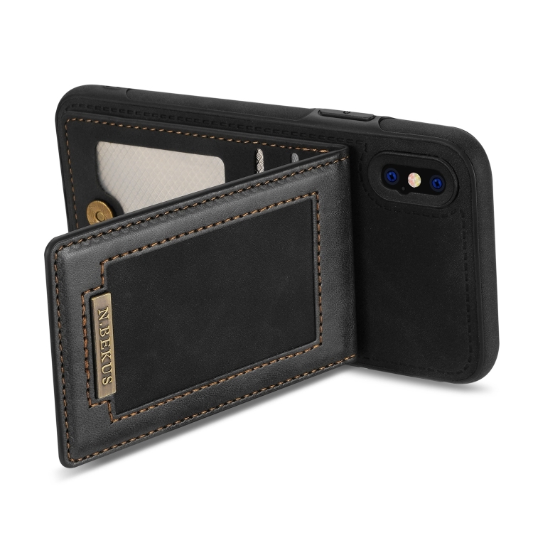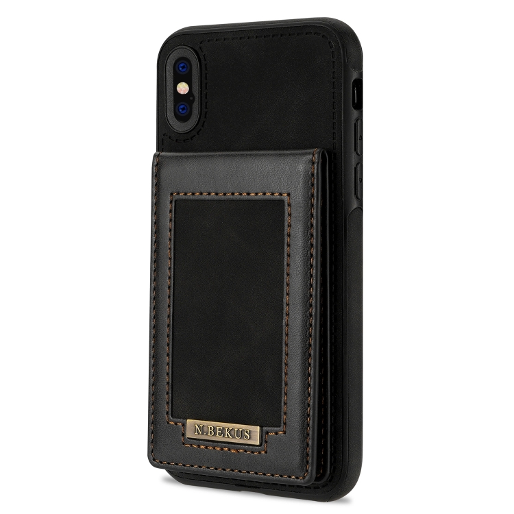 Estuche para Teléfono N.Bekus iPhone Xs Max Ranura para Tarjeta con Tapa Vertical Rfid (Negro)