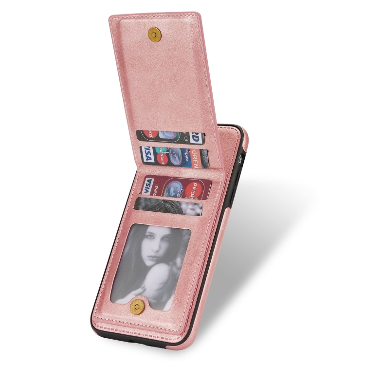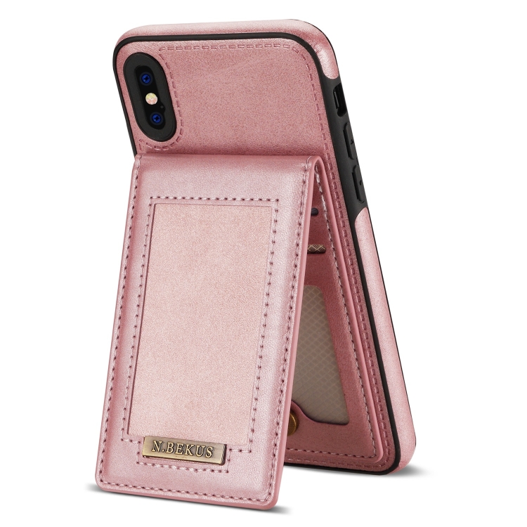 Estuche para teléfono N.Bekus iPhone Xs Max ranura para tarjeta con tapa vertical Rfid (Oro Rosa)