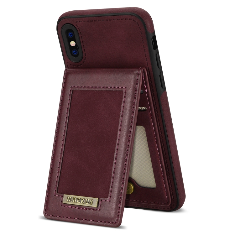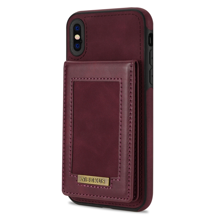 Estuche para Teléfono N.Bekus iPhone Xs Max Ranura para Tarjeta con Tapa Vertical Rfid (Rojo Vino)