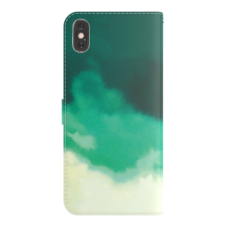 Estuche de Cuero para iPhone Xs Max con Patrón de Acuarela, Tapa Horizontal, Soporte, Ranura para Tarjeta y Billetera (Verde Cian)