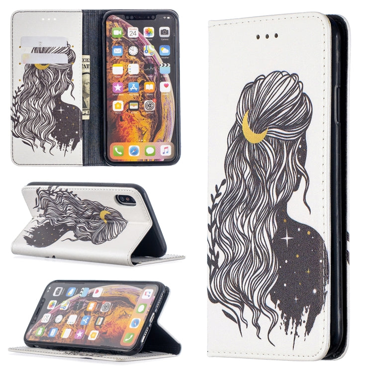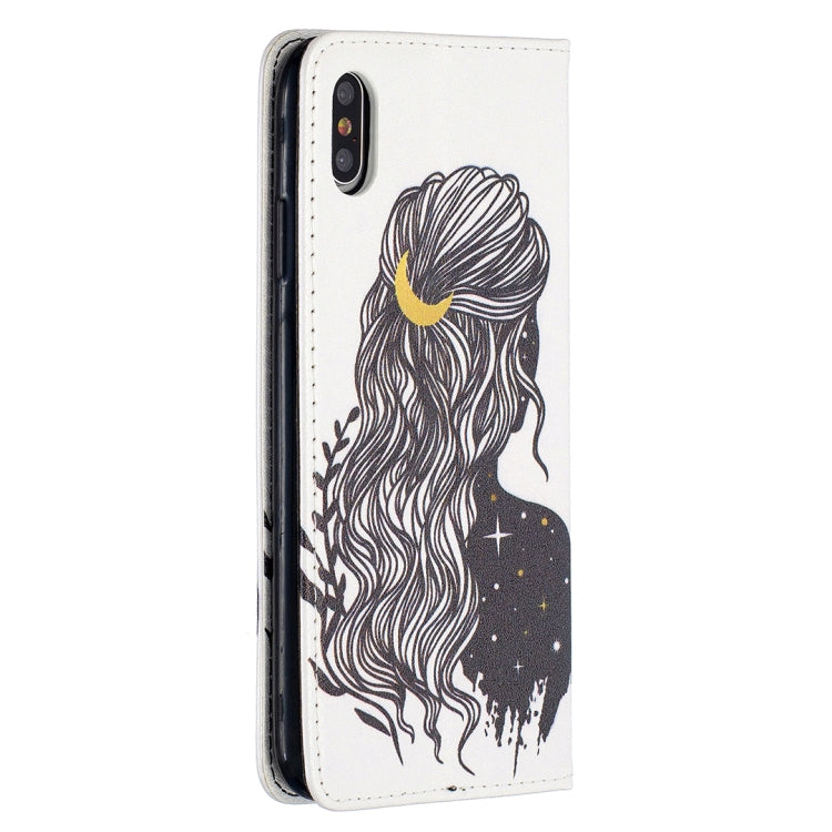 Estuche de Cuero de Pu para iPhone Xs Max con Patrón de Dibujo, Tapa Horizontal Magnética Invisible, Soporte y Ranuras para Tarjetas (Niña)