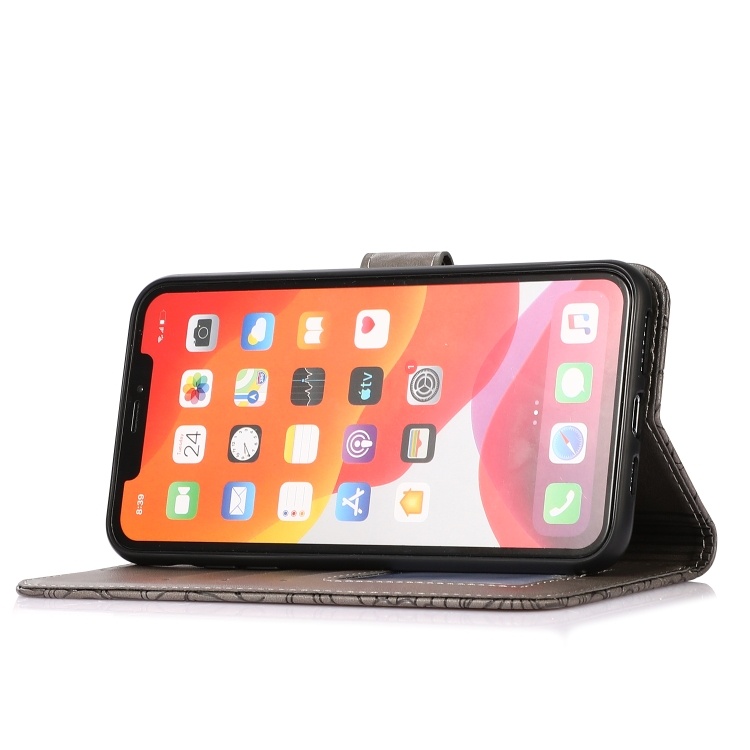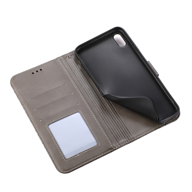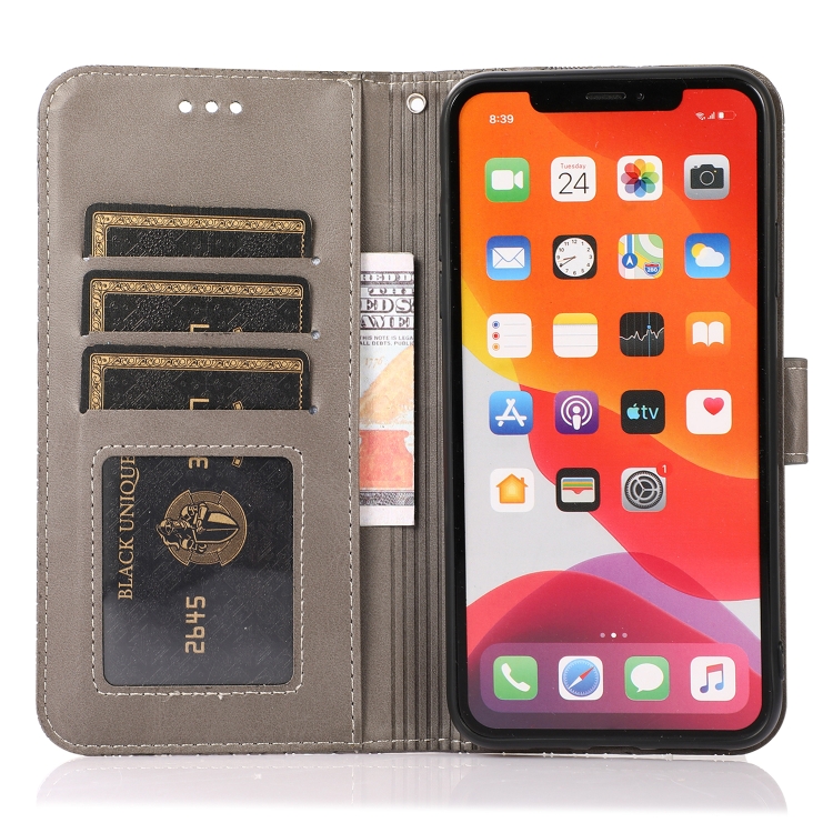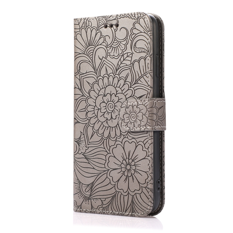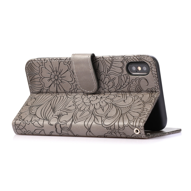 Estuche de Cuero Skin Feel para iPhone Xs Max con Tapa Horizontal Girasol En Relieve Soporte Ranuras Tarjetas Billetera Cordón (Gris)