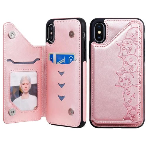 Estuche Protector para iPhone Xs Six Cats con Patrón En Relieve, Soporte, Ranuras para Tarjetas y Marco de Fotos (Oro Rosa)