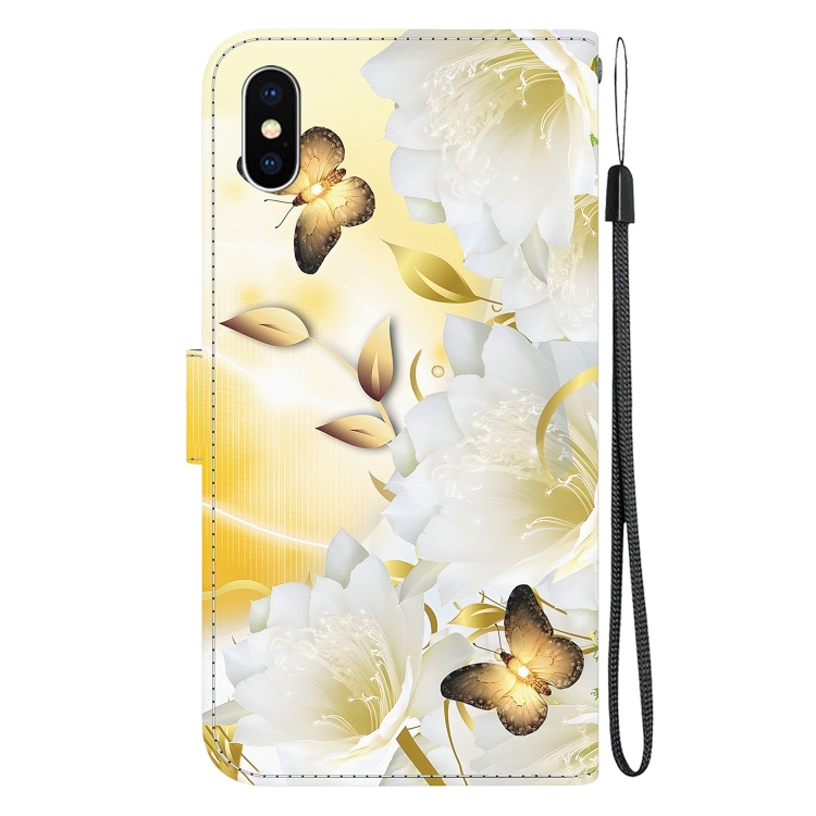 Funda de Cuero para iPhone Xs / X con Dibujo Coloreado y Textura de Cristal (Epiphyllum de Mariposa Dorada)
