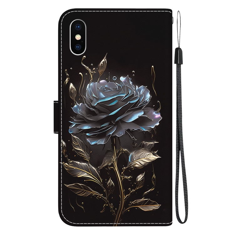 Funda para teléfono iPhone Xs / X cuero dibujo coloreado textura cristal (Rosa Negra)