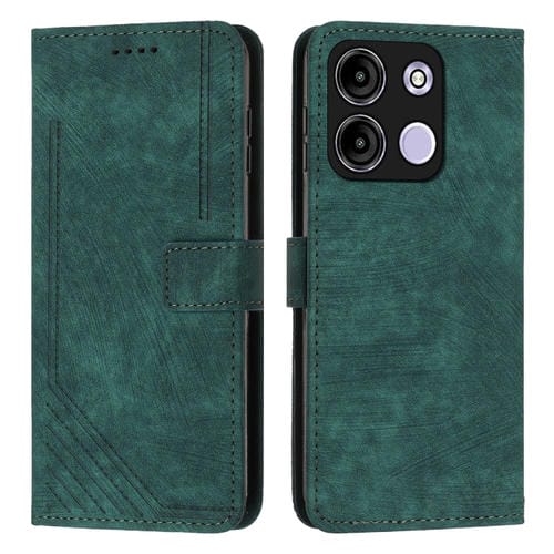 Funda de Cuero para Itel A60S con Patrón de Rayas y Cordón (Verde)