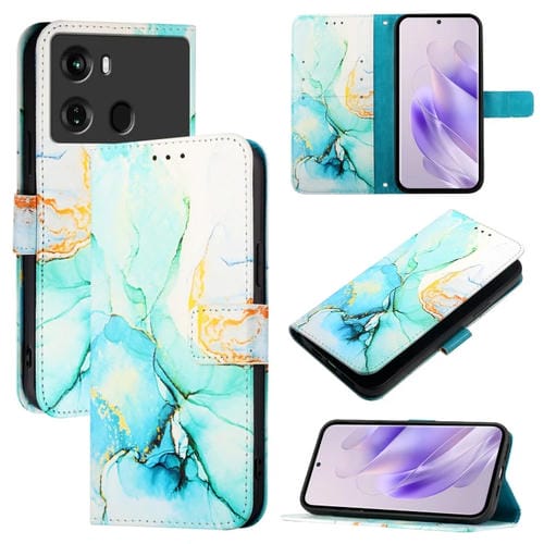 Funda de Cuero con Tapa para Itel P40 Pt003 con Patrón de Mármol (Verde)