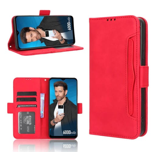 Funda de Cuero para Itel P40 Skin Feel con Textura Becerro y Ranuras para Tarjetas (Rojo)
