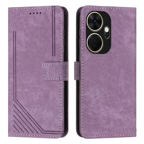 Funda de Cuero para Itel P55 con Patrón de Rayas y Cordón (Púrpura)