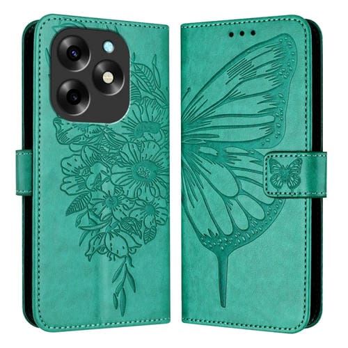 Funda de Cuero para Itel S23 con Mariposa en Relieve (Verde)