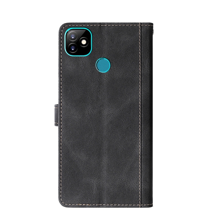 Estuche para Itel Visión 1 con Skin Fleh Gat de Paja y Hebilla Magnética de Cuero (Negro)