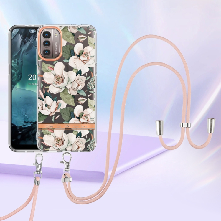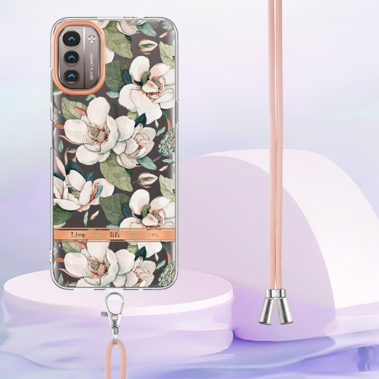 Para la caja TPU de la serie Nokia G21/G11 Flowers con Lanyard (Green Gardenia)