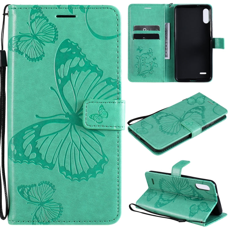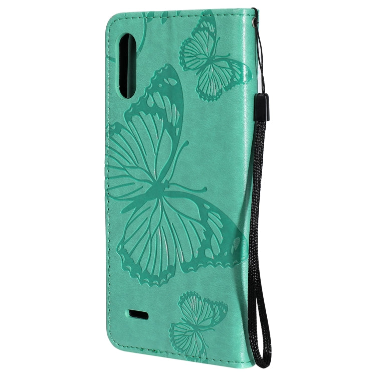 Funda de Cuero para LG K22 / K22 Plus 3D Mariposas En Relieve con Tapa Horizontal, Soporte y Ranura para Tarjeta (Verde)