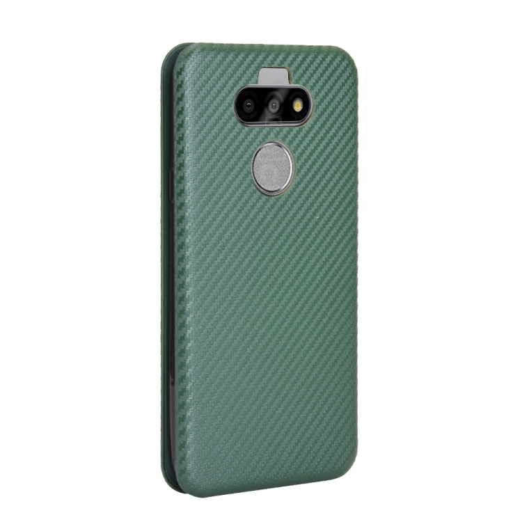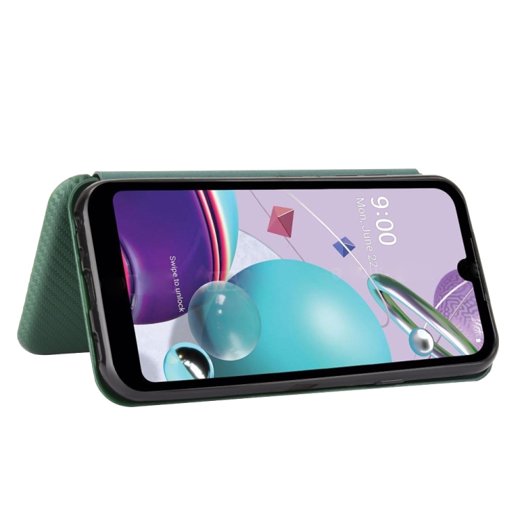 Carcasa para LG K31 Cuero con Tapa Magnética Horizontal Textura Fibra de Carbono TPU + PC + PU con Ranura para Tarjeta (Verde)