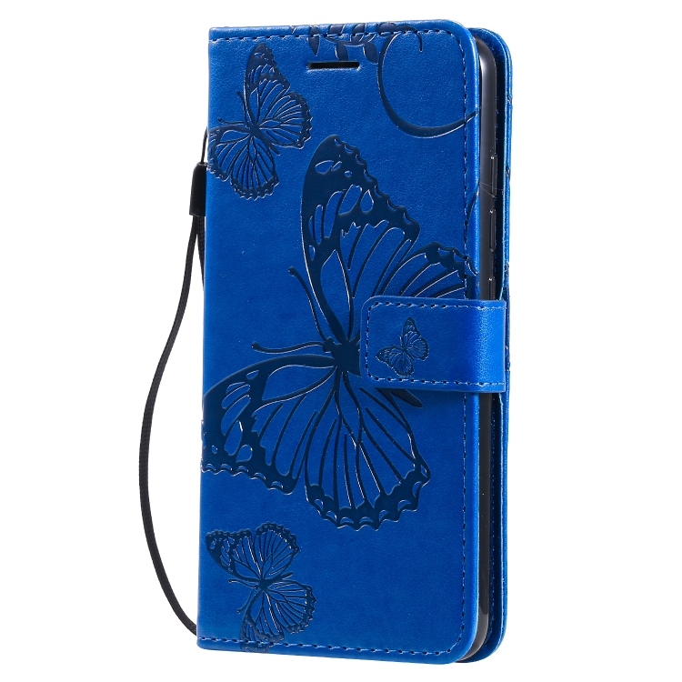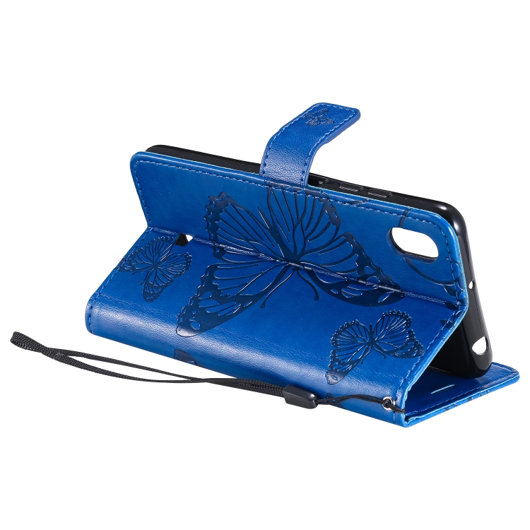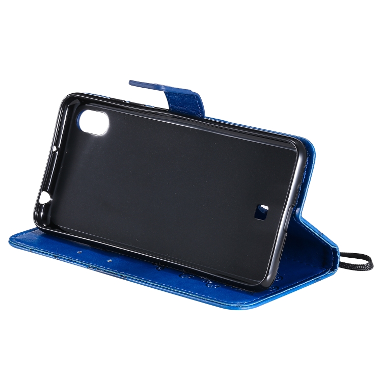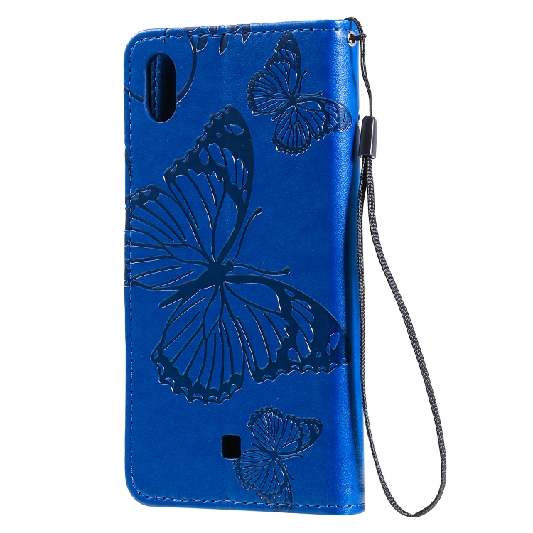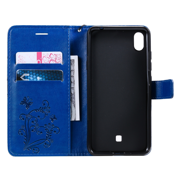 Estuche Cuero Pu LG K40S Tapa Horizontal Mariposa Soporte Ranuras Tarjetas Billetera Cordón (Azul)