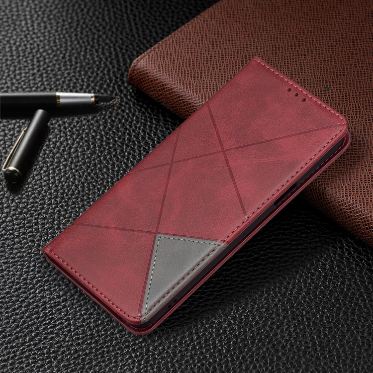 Funda Horizontal Flip para LG K42 Rhombus Texture con Soporte y Ranuras para Tarjeta (Rojo)