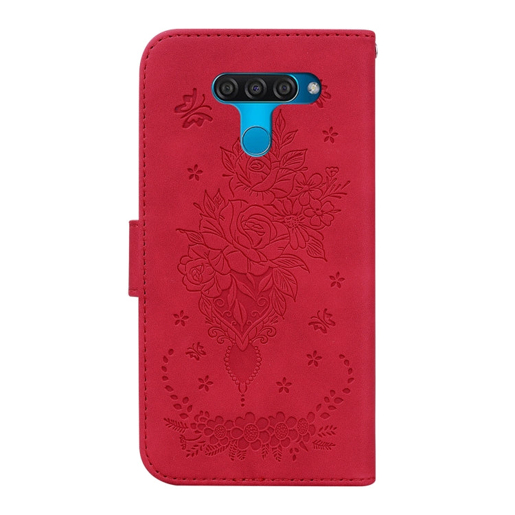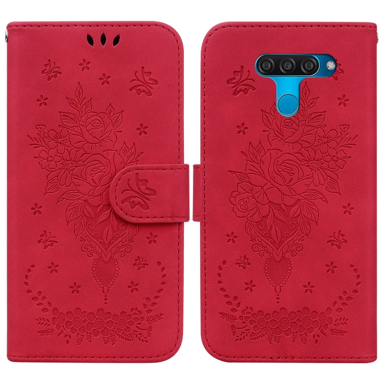 Funda para LG K50 / Q60 Butterfly Rose Rossed Foothip En Relieve de Cuero (Rojo)