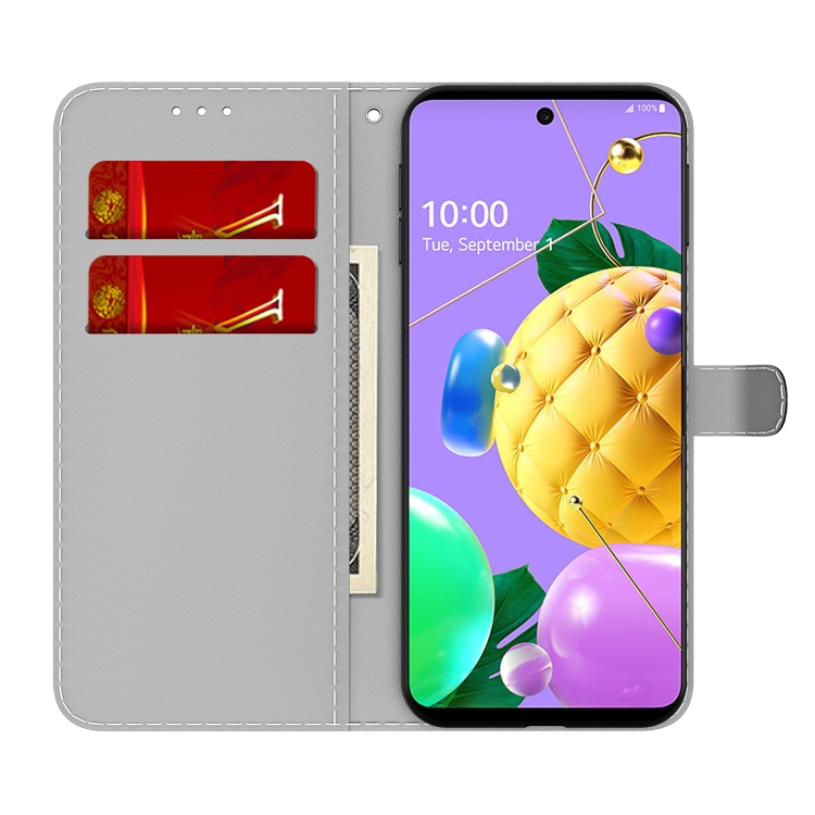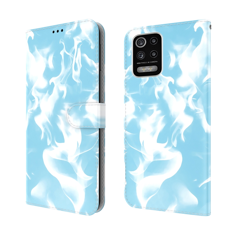 Funda Horizontal Flip para LG K52 K62 Q52 Nube Fog Pattel con Soporte y Ranura para Tarjeta y Billetera (Sky Blue)