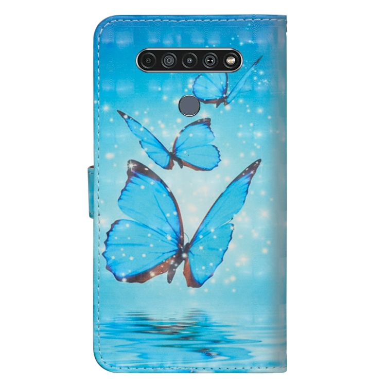 Funda LG K61 TPU + Cuero PU Flip Horizontal con Soporte, Ranuras y Cordón (Tres Mariposas)