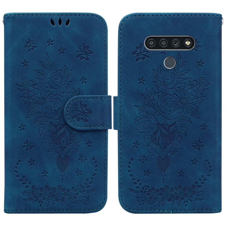 Funda de Cuero para LG K71 Stylo 6 con Relieve de Mariposa (Azul)