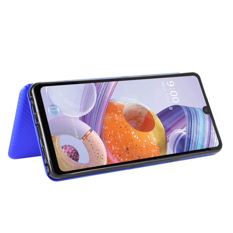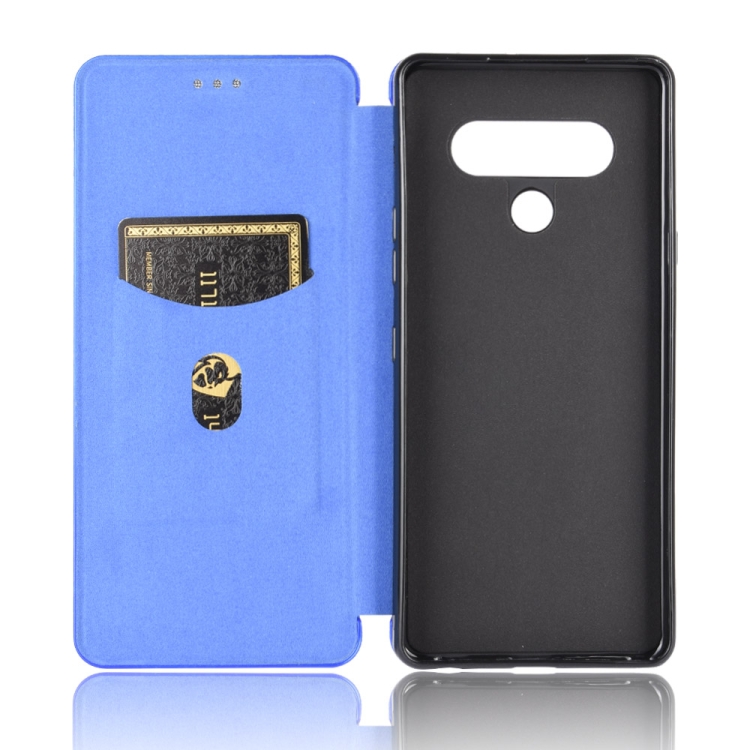 Carcasa para LG Stylo 6 Cuero con Tapa Magnética Horizontal Textura Fibra de Carbono TPU + PC + PU (Azul)
