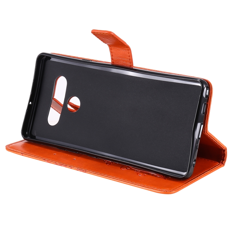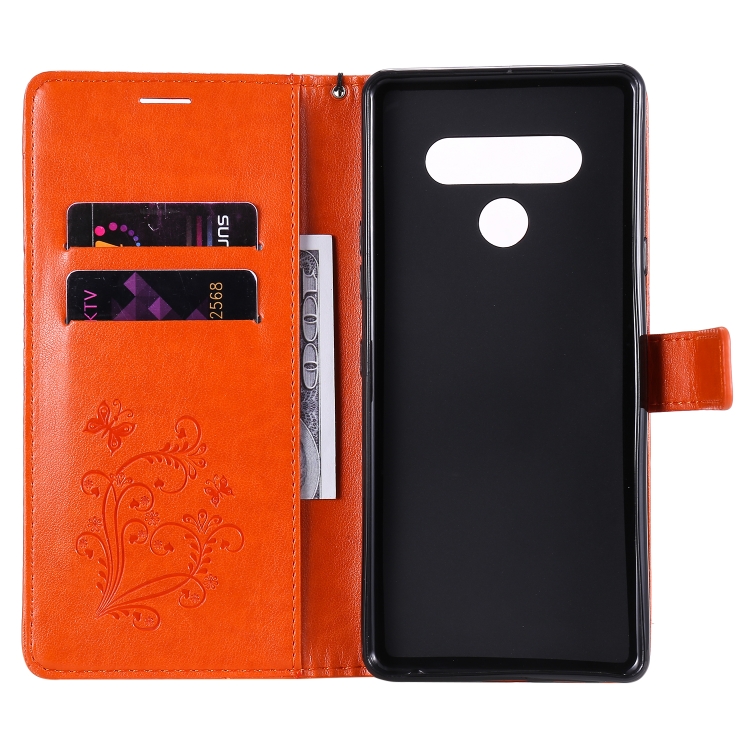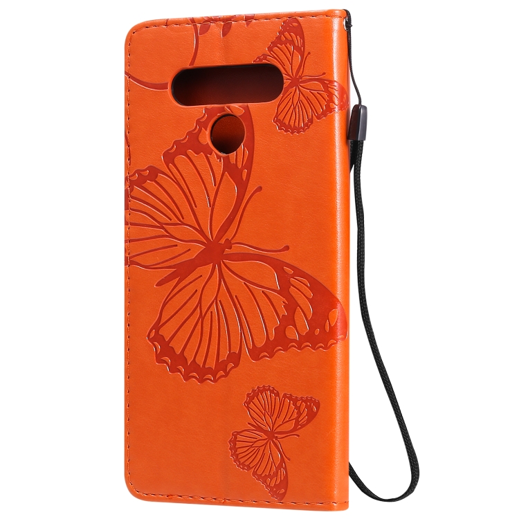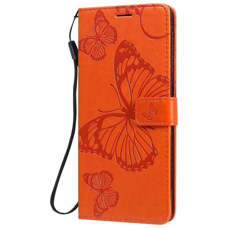 Funda de Cuero para LG Stylo 6 con Tapa Horizontal, Patrón Mariposa 3D, Soporte, Ranura Tarjeta y Cordón (Naranja)
