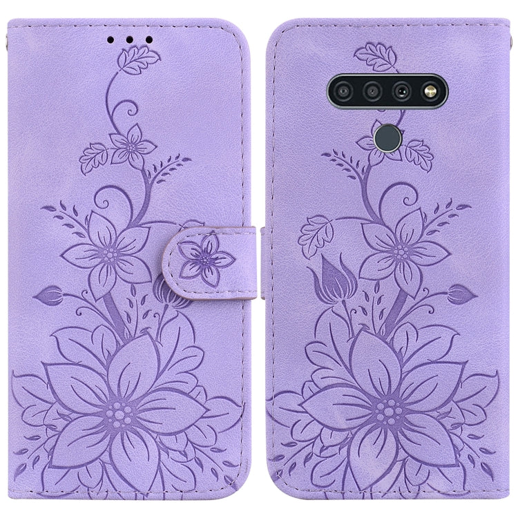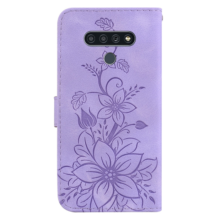 Funda para Teléfono LG Stylo 6 K71 de Cuero con Relieve Lily (Púrpura)